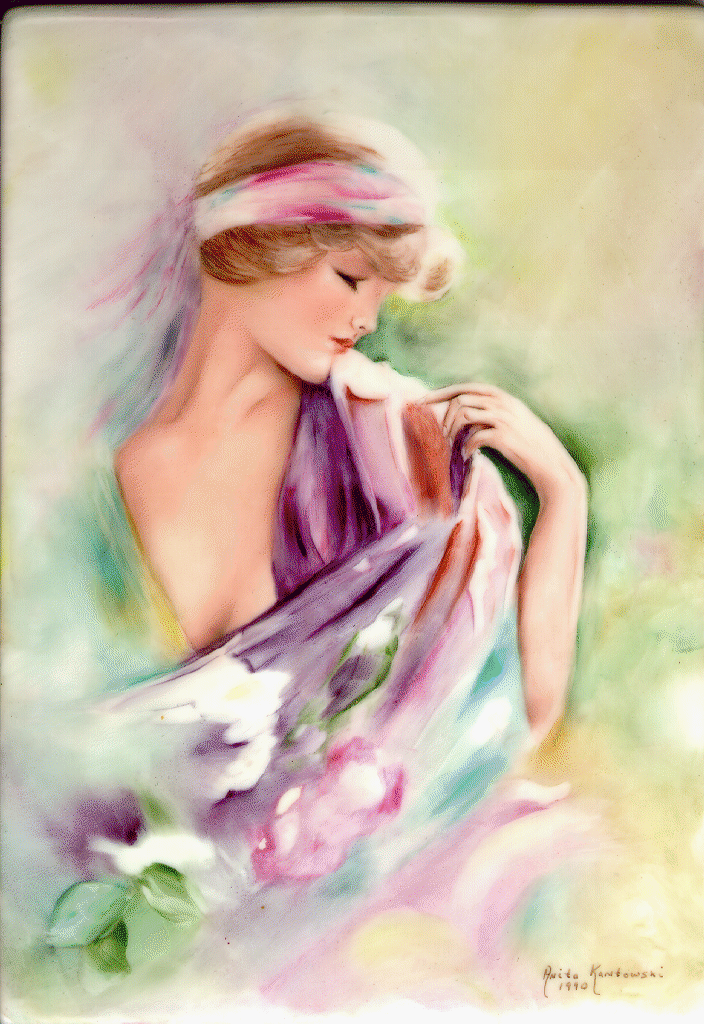 Dreaming: a 5" x 7" painting on white porcelain tile.