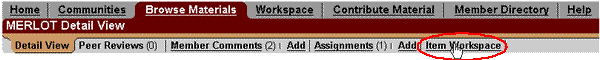 - Click on the item's MERLOT title to bring up the item's Detail Page